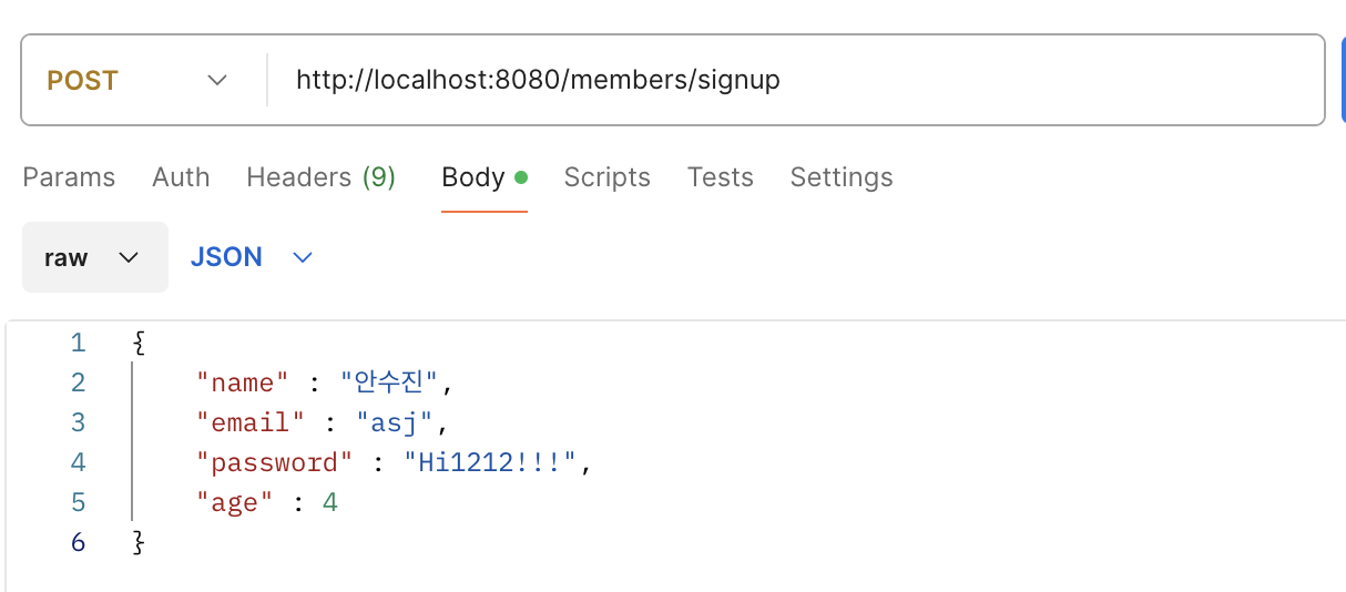 회원가입시 요청으로 오는 MemberRequest DTO를 컨트롤러에서는